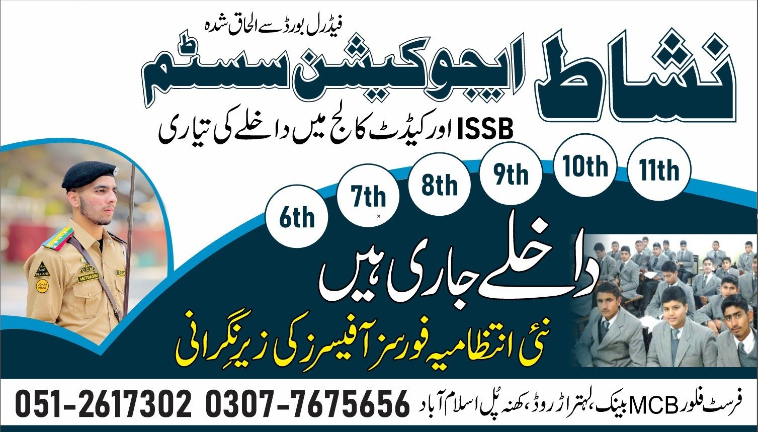 Nishat Education and Forces Academy is now offering ISSB Training and Cadet College Lower Topa Admission Test Preparation!